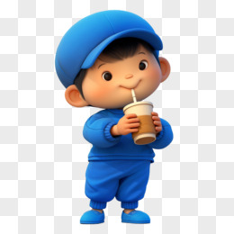 3D卡通一个穿蓝色衣服的小男孩抱着吸管杯免抠元素