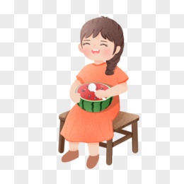 手绘免抠女孩吃西瓜元素