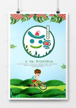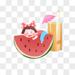 手绘夏天女孩吃西瓜冰沙微场景元素
