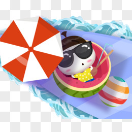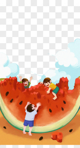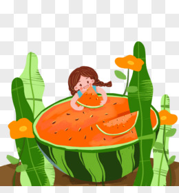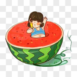 手绘卡通夏日微景观女孩趴在西瓜上免抠元素