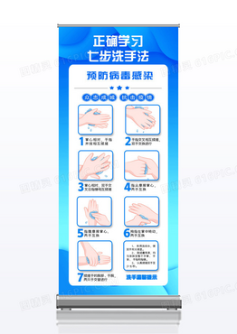 绿色简约七步洗手法七步洗手病毒细菌疫情展架易拉宝设计