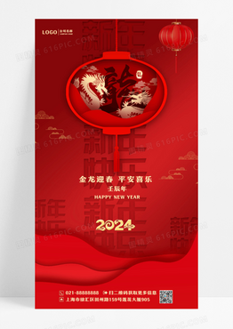 2024龙年新年元旦春节立体剪纸灯笼手机宣传海报