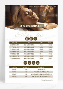 咖啡色简约大气轻医美洗脸吧美容管理价目表海报