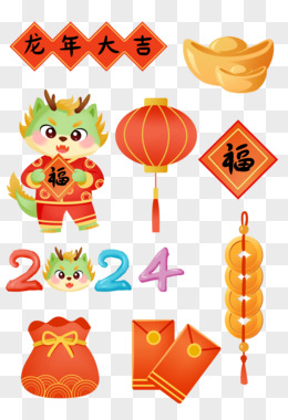 一组手绘插画风新年年俗腊月除夕元素合集素材
