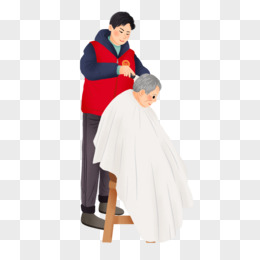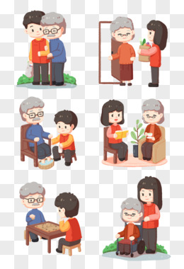 一组手绘插画风志愿者帮助老人套图系列五免抠元素