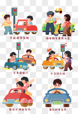一组创意插画交通安全合计元素