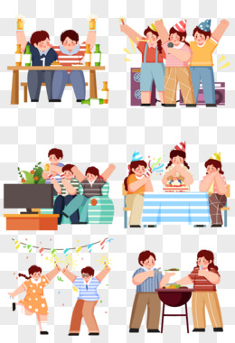 一组创意插画朋友聚会派对合集元素