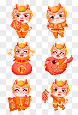 一组插画风喜庆龙年吉祥龙形象合集元素