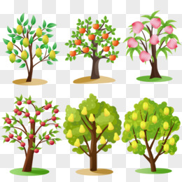 一组手绘不同类型果树套图插画元素