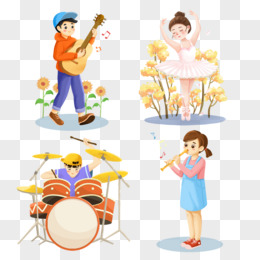 一组插画风儿童各种兴趣班免抠素材