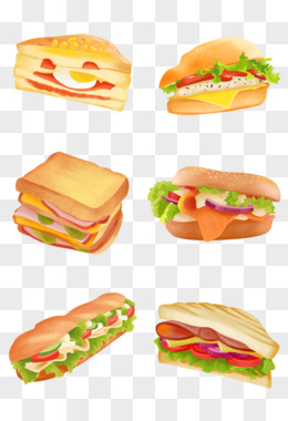 一组手绘插画三明治套图元素