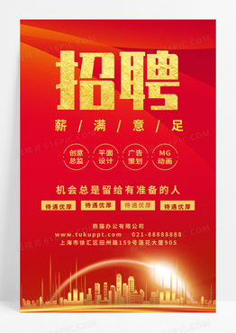 红色大气招聘薪满意足海报