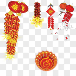 手绘兔年兔子舞狮鞭炮剪纸素材
