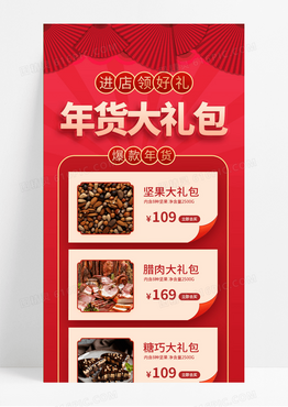 红色大气简约中国风喜庆年货大礼包年货大礼包长图年货节