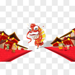 手绘中国年习俗年初七人日节场景素材