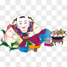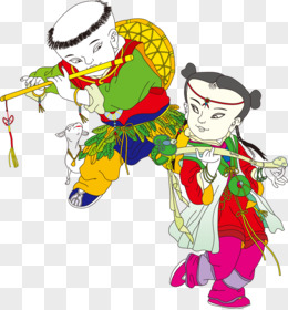 喜庆节日红衣敲鼓娃娃小孩人物元素