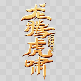 毛笔风龙飞凤舞艺术字设计金色立体设计