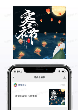 中国风清新寒衣节祭祀祖先少女放灯公众号小图