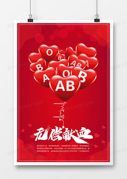 简约红色无偿献血日献血公益宣传海报