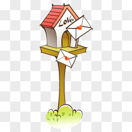 卡通手绘信封信箱和爱护环境指示牌矢量元素