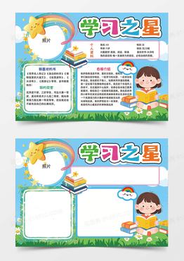 学习之星可爱插画设计简约彩虹人物手绘手抄报