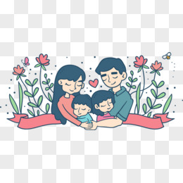 时尚线性家庭人物绘画矢量素材