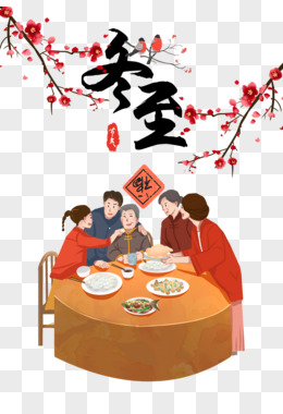 手绘冬至幸福一家人合成插画素材