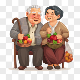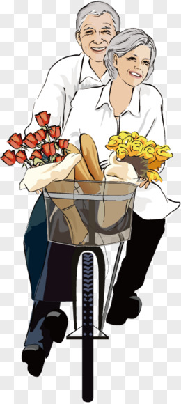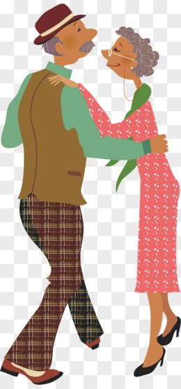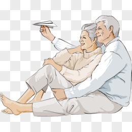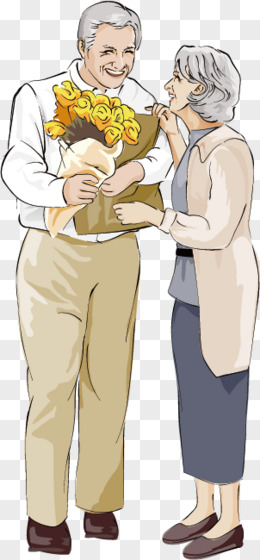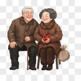 手绘老年夫妻幸福合照爷爷奶奶照片免抠元素