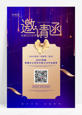 蓝色元旦邀请函公司年会渐变流星光效年会邀请函海报