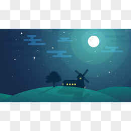 蓝色天空星空月牙图