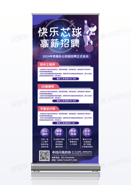 蓝紫色快乐芯球校园招聘易拉宝展架