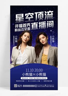 深色AI摄影图星空顶流直播间直播预告手机海报