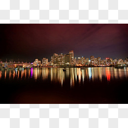 繁华都市场景水面星空摄影