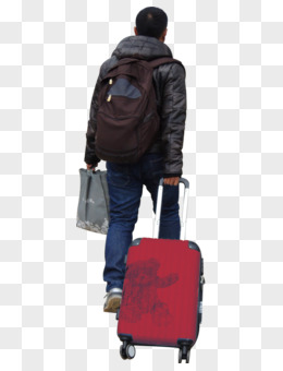 3D卡通一家三口拿着行李旅行的背影免抠元素