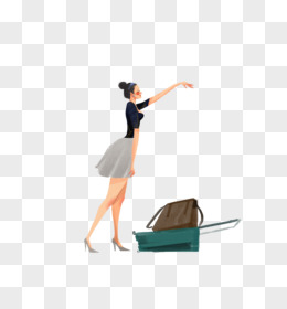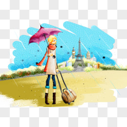 卡通三个年轻女孩拿着行李旅行免抠元素