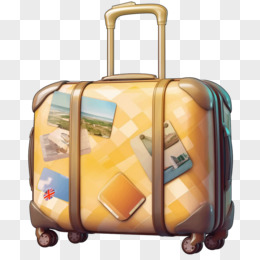 插画一对年轻夫妇拉着行李箱和一张巨大的机票免抠元素