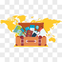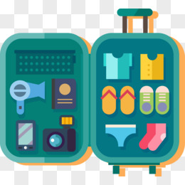 扁平卡通旅行行李箱登机箱免抠元素