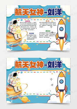 蓝色背景航天女神云朵火箭宇航员手抄报