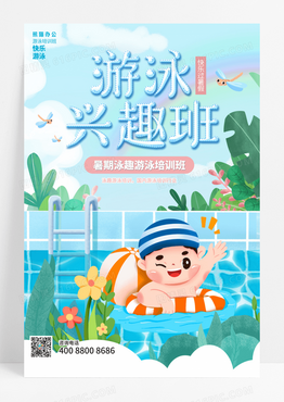 蓝色游泳兴趣课海报设计游泳兴趣班海报