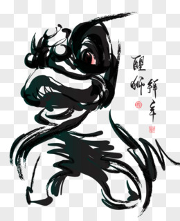 水墨醒狮子舞狮