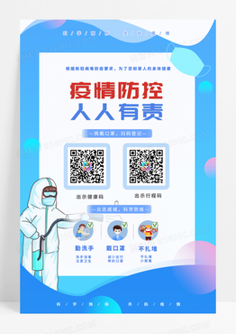 蓝色简约新冠疫情防控温馨提示公益海报