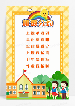 卡通风格创意班级公约上课不迟到宣传海报班级公约海报