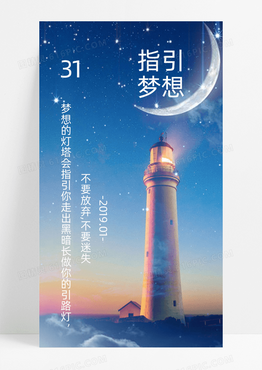 指引梦想手机海报图片灯塔月亮星星房子云日落