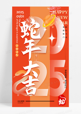 蛇年大吉蛇2025年创意手机宣传海报节日节气