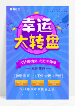幸运大抽奖幸运大转盘卡通质感电商促销创意电商优惠立体艺术字