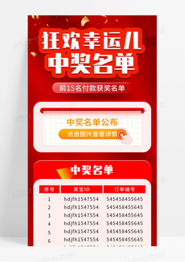 红色喜庆狂欢幸运儿中奖名单宣传长图