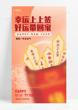 节日节气彩色半调龙年春节幸运上上签手机宣传海报