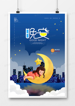 简约晚安打卡晚安心灵物语唯美星空创意海报