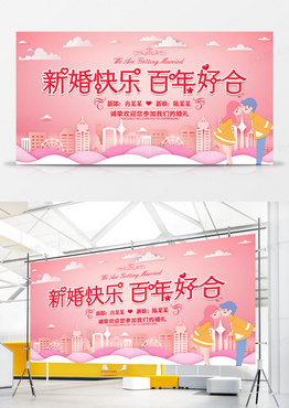 粉色唯美新婚快乐百年好合婚礼宣传展板