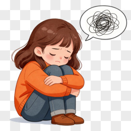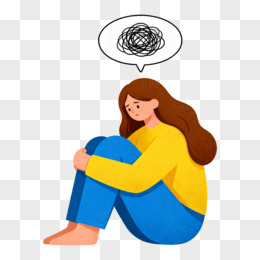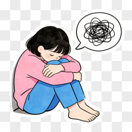 卡通手绘心理很乱的女孩免抠元素